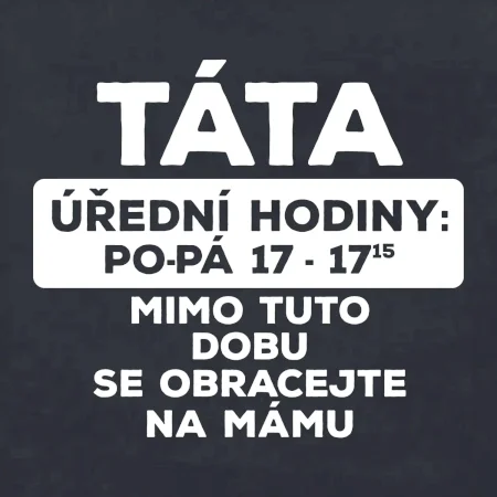 Táta a úřední hodiny. Vtipné pánské tričko pro šéfa rodiny. Vyberte barvu a velikost, klidně doplňte jméno. Skvělý dárek k narozeninám či na Den otců. ✓