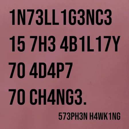 "intelligence is the ability to adapt to change" Stephen Hawking”