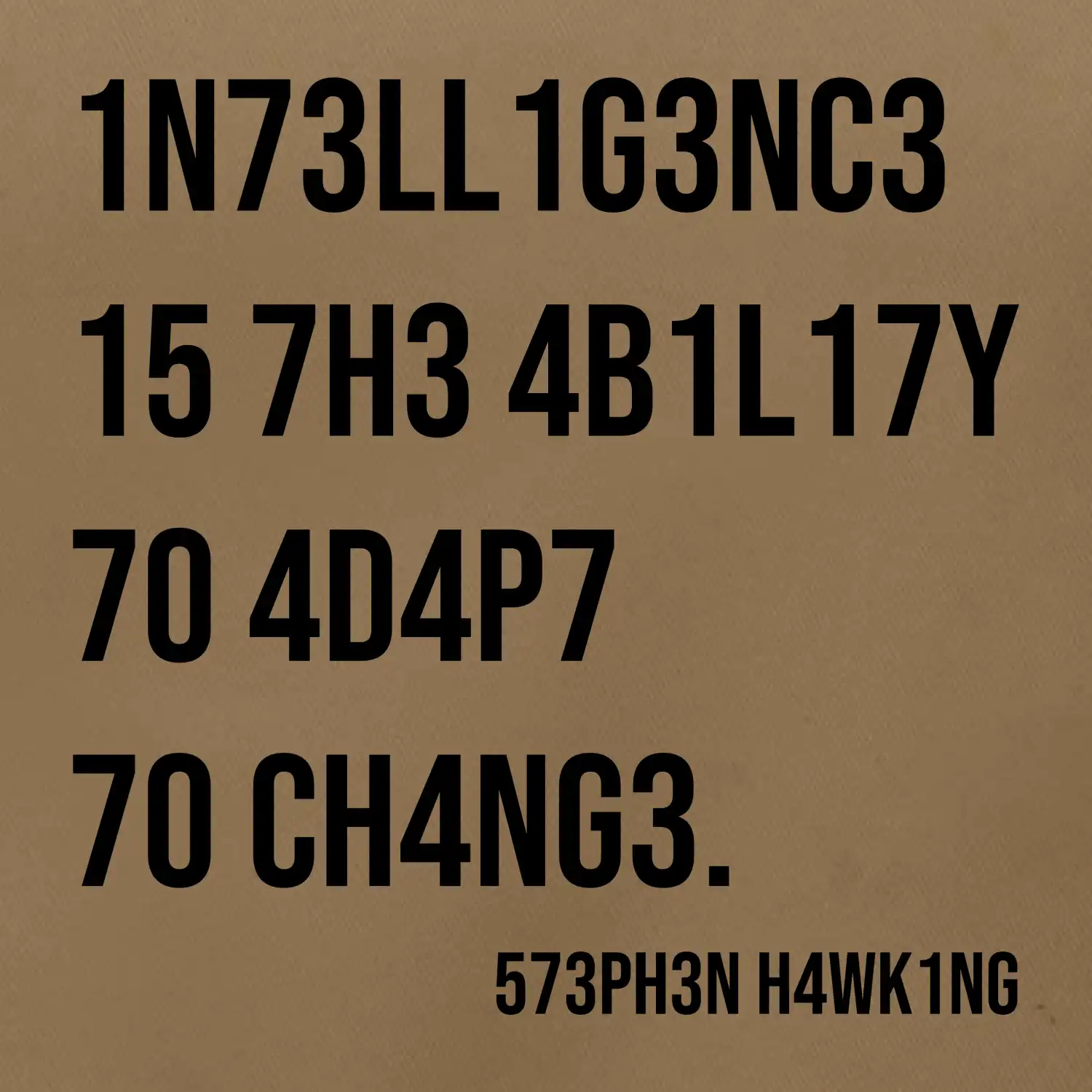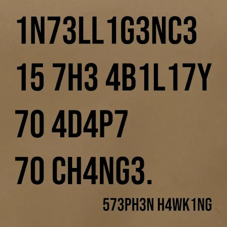 "intelligence is the ability to adapt to change" Stephen Hawking”