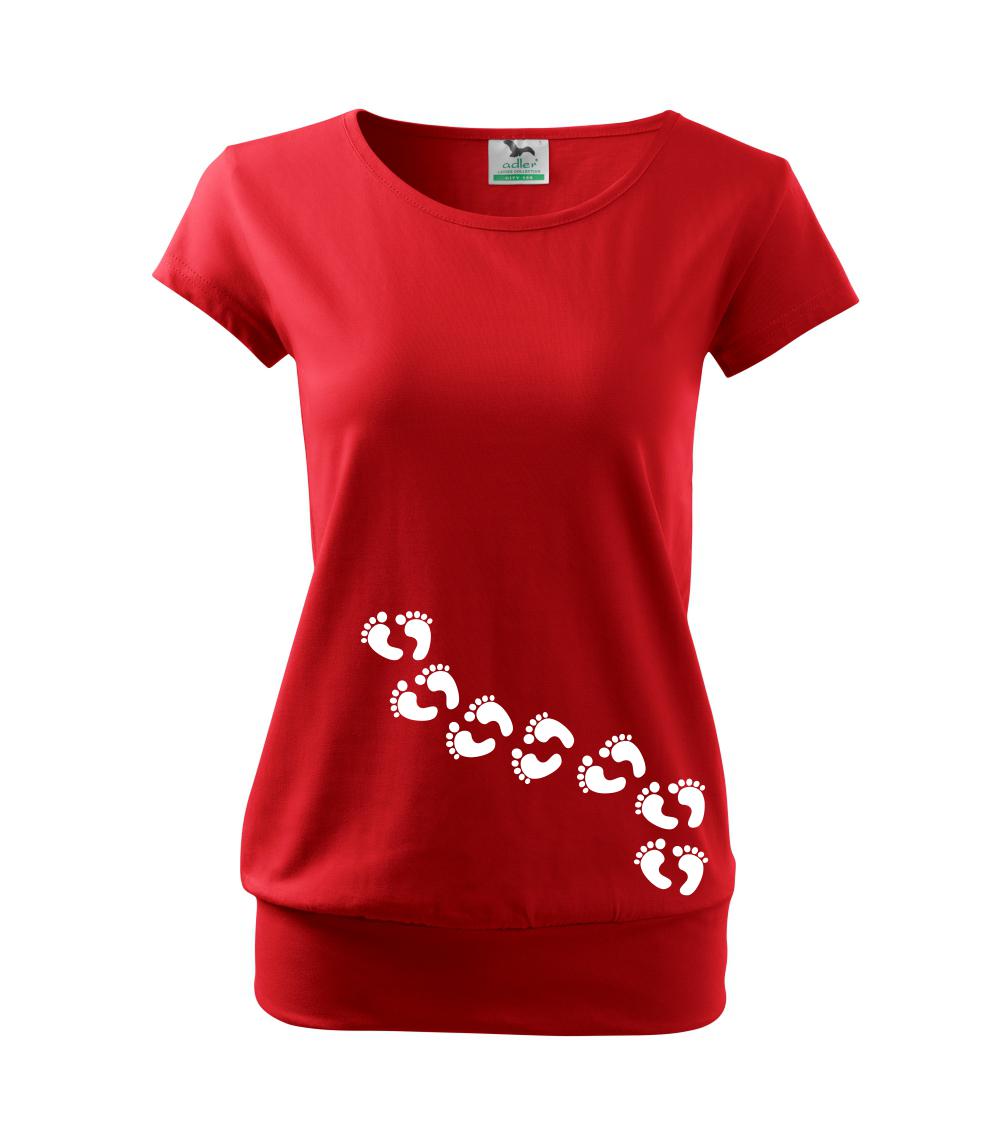 Trička pro všechny těhotné. Pořiď své kamarádce v jináči vtipný dárek! Vtipné triko s dětskými stopami jako dárek pro maminku v očekávání.