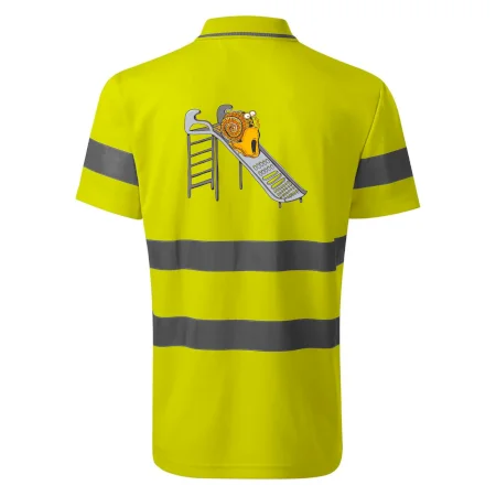 Reflexní polokošile MALFINI HV Runway 2V9 zajišťuje vysokou viditelnost díky fluorescenčnímu polyesteru a certifikovaným retroreflexním pruhům 3M. Pohodlná díky vnitřní bavlněné vrstvě, s bočními švy, žebrovaným límečkem s kontrastním pruhem a légou se třemi knoflíky. Splňuje normy EN ISO 20471 (třída 2) a EN ISO 13688, ideální pro práci i volný čas. Dostupná v reflexní žluté a oranžové, velikosti S-3XL.