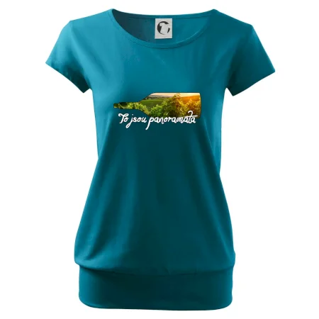 Trendové dámské triko s velmi krátkým rukávem, volnějšího střihu, v dolním kraji všité do širokého lemu. Kulatý průkrčník s úzkým lemem ze shodného materiálu.
