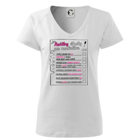 Rozlučkové triko pro nevěstu s úkoly, které musí splnit. K triku přidáme i fix na textil, aby mohl nevěsty tým úkoly pečlivě odškrtávat.