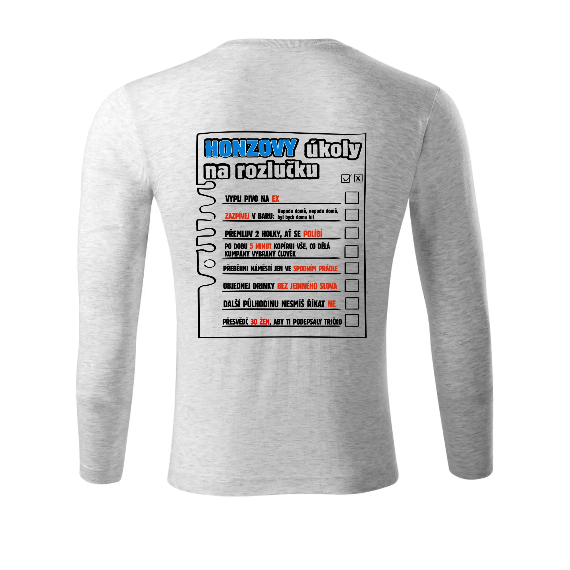 Triko na rozlučku s úkoly na zádech pro ženicha