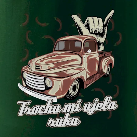 Vtipné triko pro kuchaře s nápisem "Trochu mi ujela ruka" a chilli papričkami. Pálivé papričky se musí přidávat opatrně, někdy to ale nevyjde a je jich v jídle tolik, že by to nastartovalo i auto.