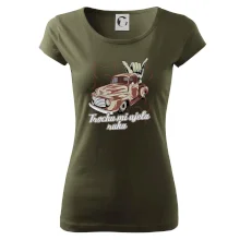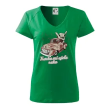Vtipné triko pro kuchaře s nápisem "Trochu mi ujela ruka" a chilli papričkami. Pálivé papričky se musí přidávat opatrně, někdy to ale nevyjde a je jich v jídle tolik, že by to nastartovalo i auto.
