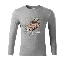 Vtipné triko pro kuchaře s nápisem "Trochu mi ujela ruka" a chilli papričkami. Pálivé papričky se musí přidávat opatrně, někdy to ale nevyjde a je jich v jídle tolik, že by to nastartovalo i auto.