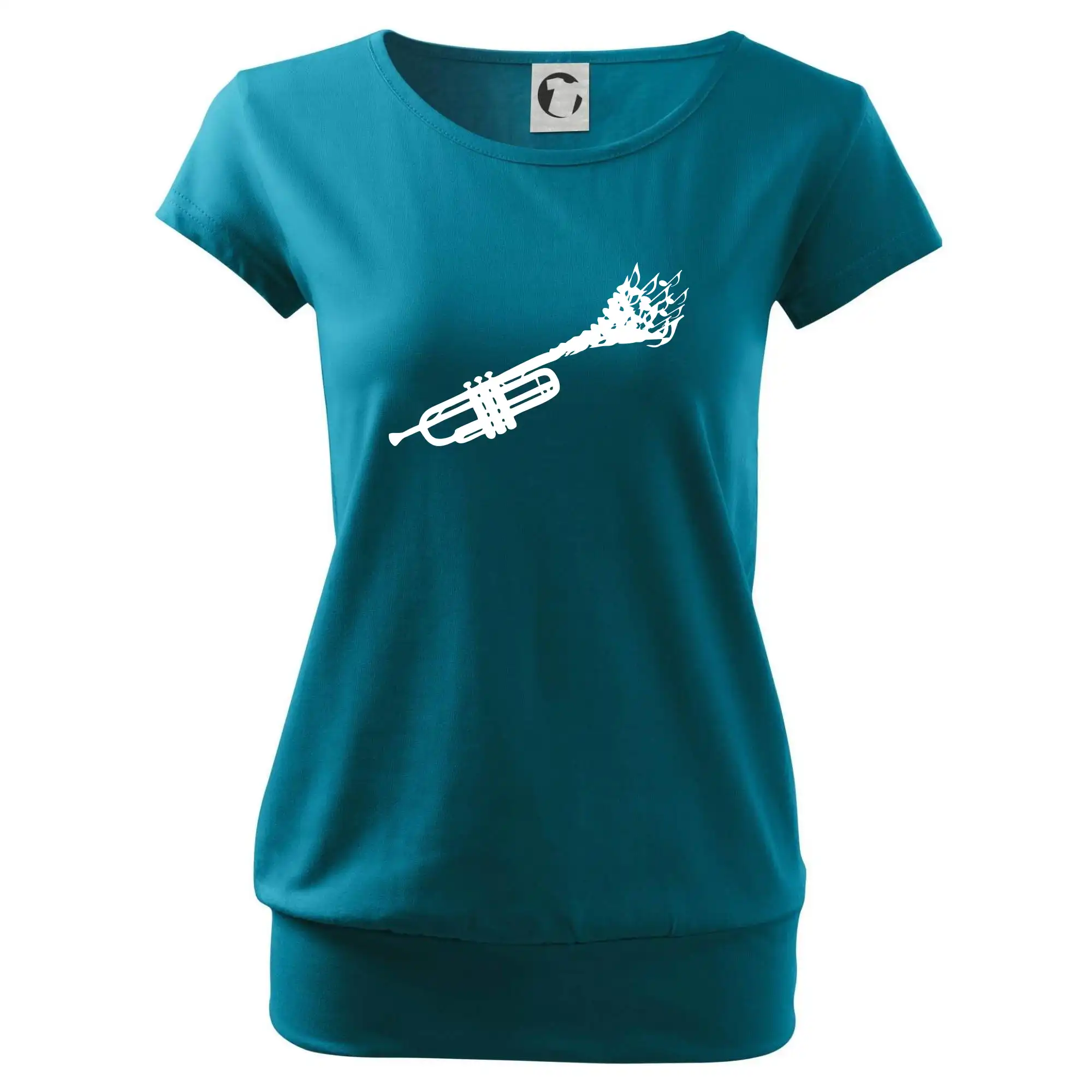 Trendové dámské triko s velmi krátkým rukávem, volnějšího střihu, v dolním kraji všité do širokého lemu. Kulatý průkrčník s úzkým lemem ze shodného materiálu.