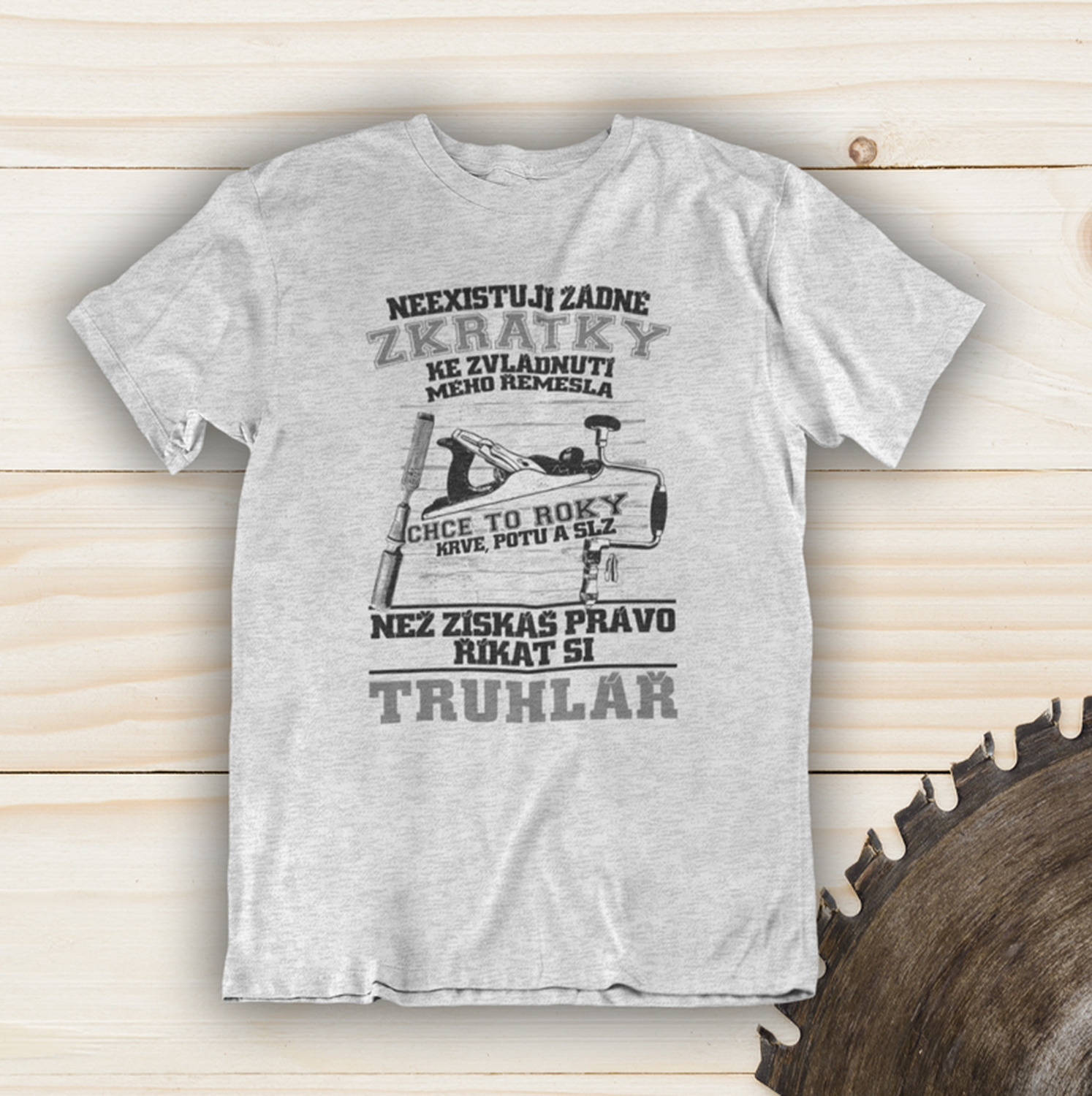 Perfektní dárek pro truhlář. triko s pilou. Originální dárek pro truhláře je toto tričko s hoblíkem na triku.