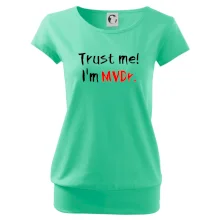 Triko pro veterináře s nápisem "Věř mi, jsem doktor veterinární medicíny!". Triko s vtipným nápisem. Vtipný dárek pro veterináře.