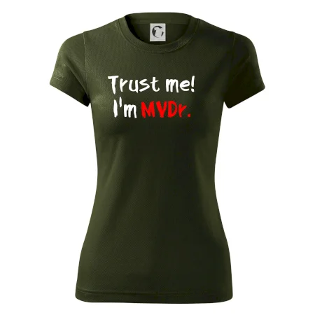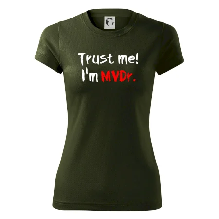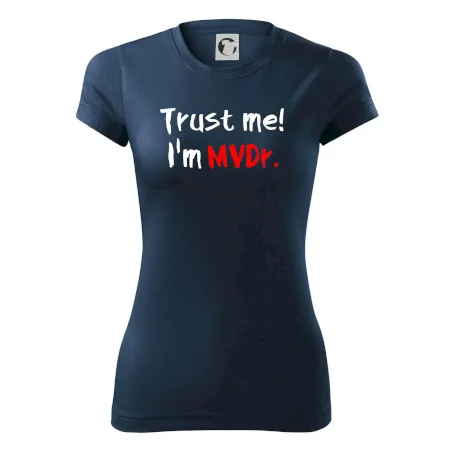 Triko pro veterináře s nápisem "Věř mi, jsem doktor veterinární medicíny!". Triko s vtipným nápisem. Vtipný dárek pro veterináře.