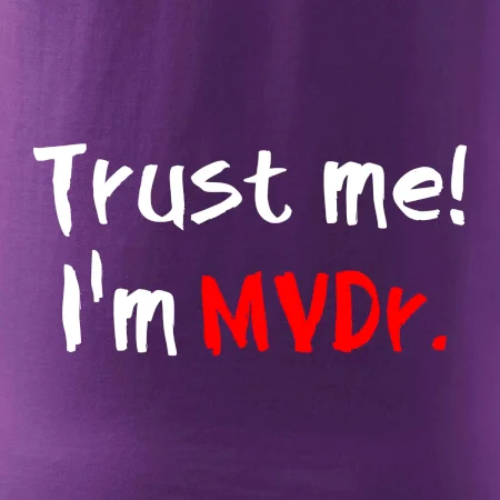 Triko pro veterináře s nápisem "Věř mi, jsem doktor veterinární medicíny!". Triko s vtipným nápisem. Vtipný dárek pro veterináře.