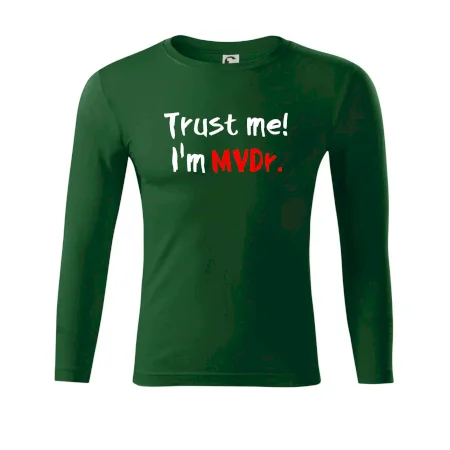 Triko pro veterináře s nápisem "Věř mi, jsem doktor veterinární medicíny!". Triko s vtipným nápisem. Vtipný dárek pro veterináře.