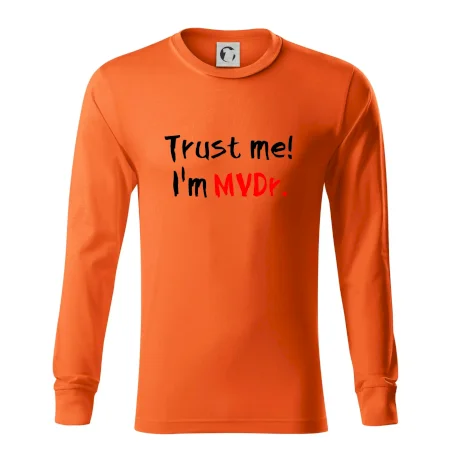 Triko pro veterináře s nápisem "Věř mi, jsem doktor veterinární medicíny!". Triko s vtipným nápisem. Vtipný dárek pro veterináře.