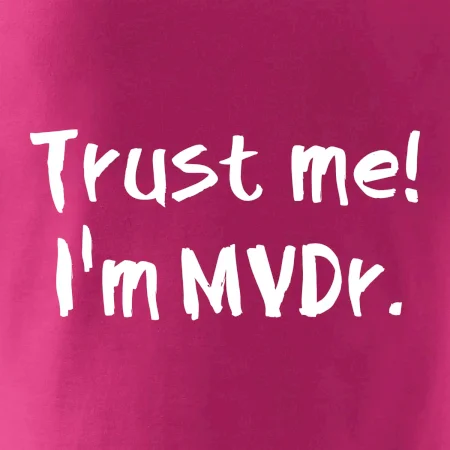 Triko pro veterináře s nápisem "Věř mi, jsem doktor veterinární medicíny!". Triko s vtipným nápisem. Vtipný dárek pro veterináře.