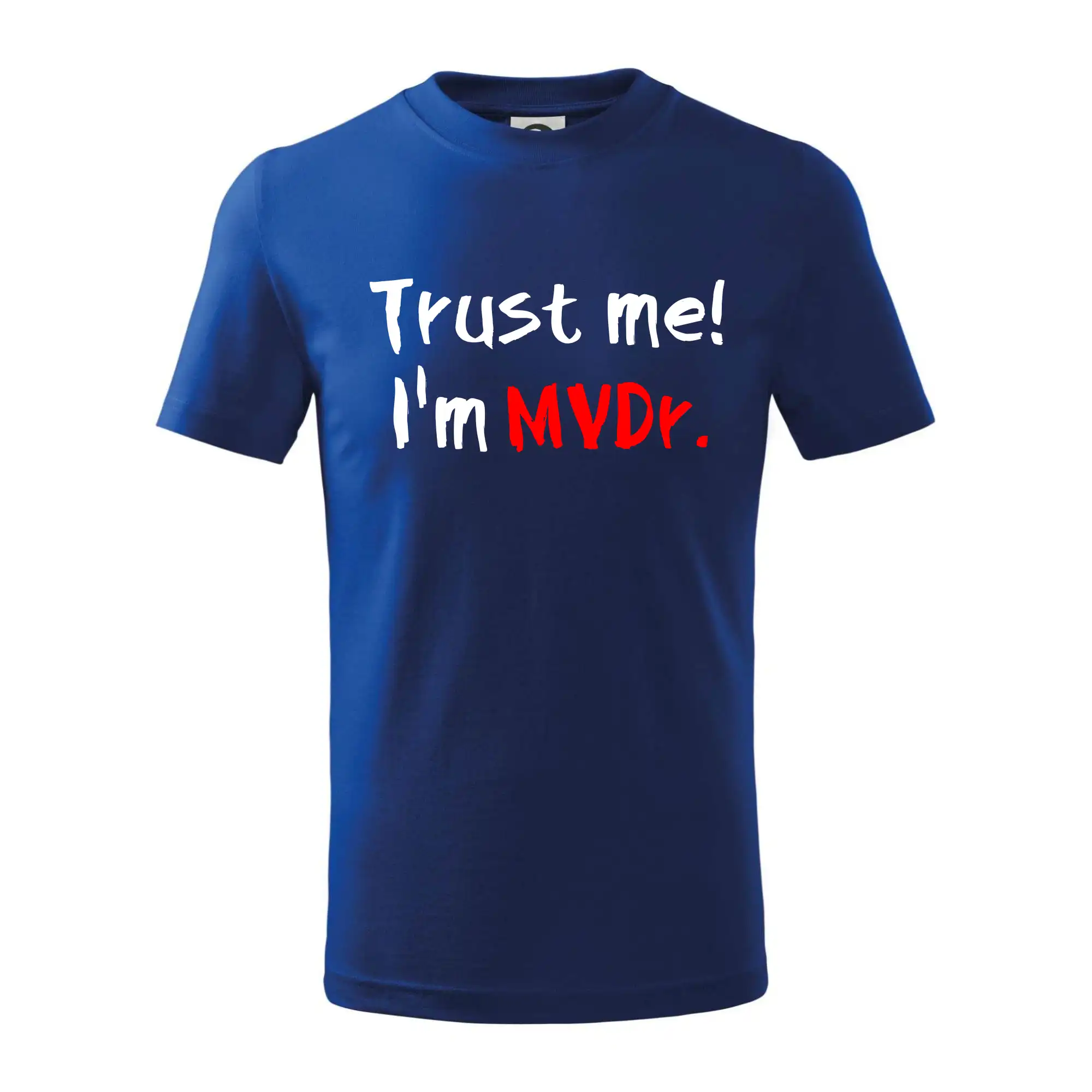 Triko pro veterináře s nápisem "Věř mi, jsem doktor veterinární medicíny!". Triko s vtipným nápisem. Vtipný dárek pro veterináře.
