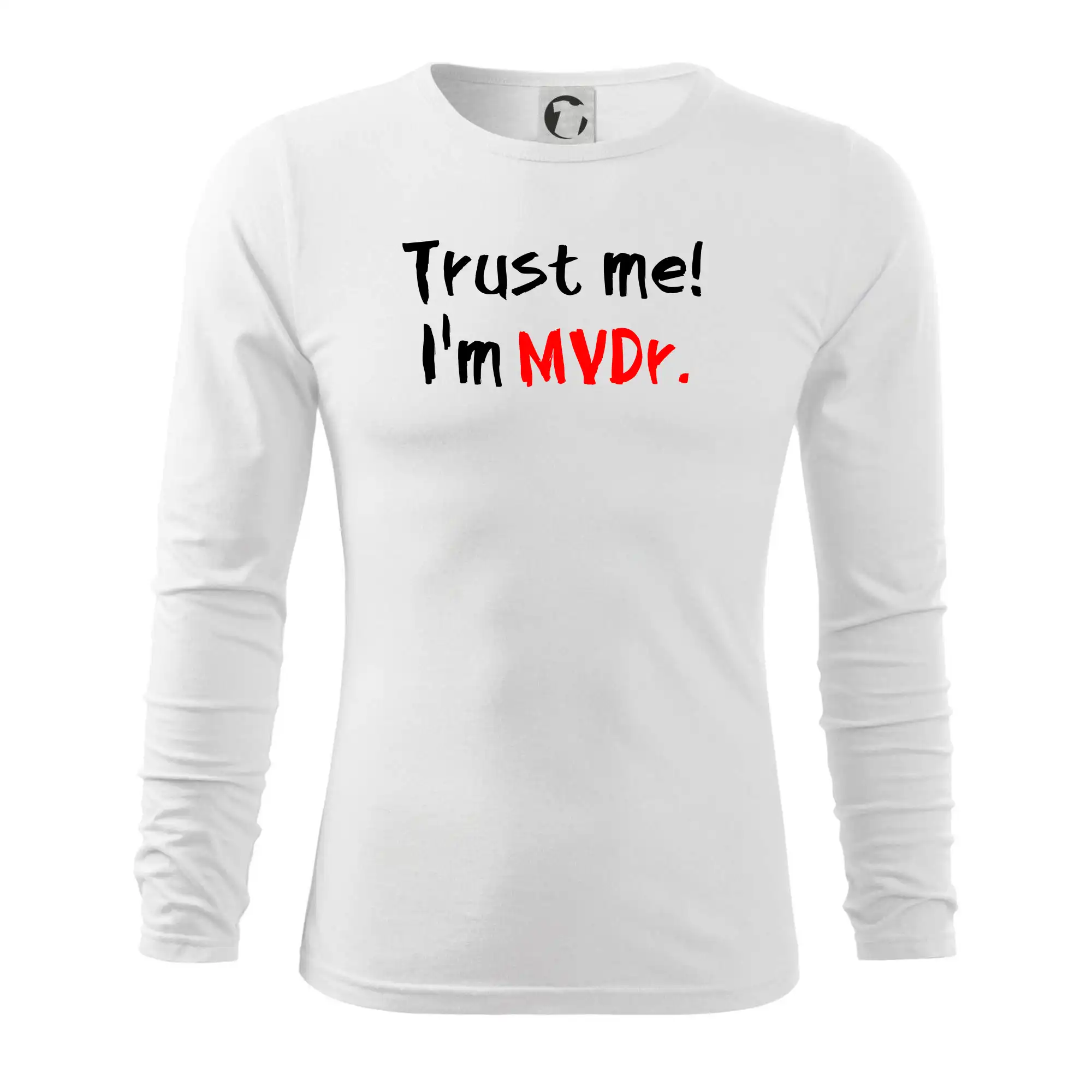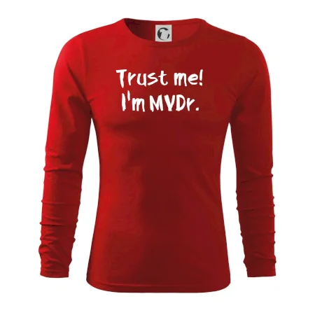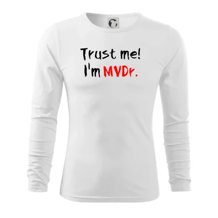 Triko pro veterináře s nápisem "Věř mi, jsem doktor veterinární medicíny!". Triko s vtipným nápisem. Vtipný dárek pro veterináře.