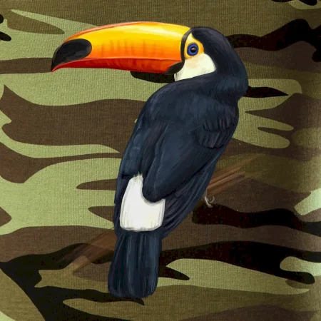 Tričko střední gramáže v barvách camouflage. Střih s bočními švy. Lem průkrčníku ze žebrového úpletu s přídavkem 5 % elastanu. Vnitřní část zadního průkrčníku začištěna páskou v barvě camouflage.