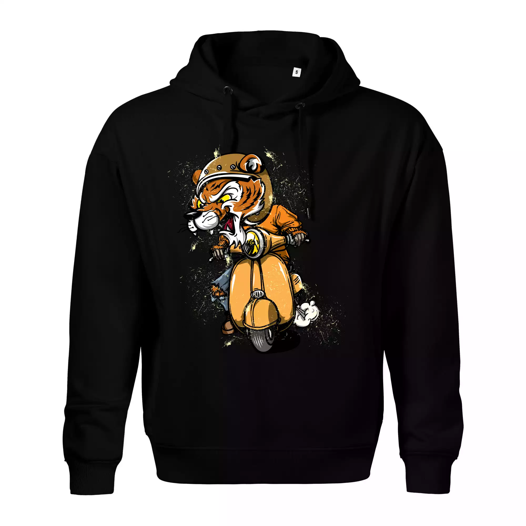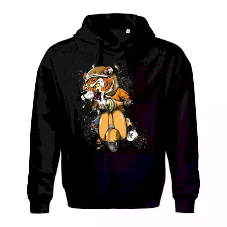 Tričko pro motorkáře, ne kterém je tygr na skútru. Motorkářské tričko, kde je motorkářem tygr, musí mít doma každý vášnivý motorkář. Tričko s tygrem je vhodný dárek pro motorkáře.