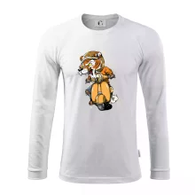 Tričko pro motorkáře, ne kterém je tygr na skútru. Motorkářské tričko, kde je motorkářem tygr, musí mít doma každý vášnivý motorkář. Tričko s tygrem je vhodný dárek pro motorkáře.