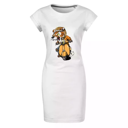 Tričko pro motorkáře, ne kterém je tygr na skútru. Motorkářské tričko, kde je motorkářem tygr, musí mít doma každý vášnivý motorkář. Tričko s tygrem je vhodný dárek pro motorkáře.