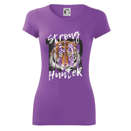 Buď silný jako tygr. Hledáš triko se zvířecí tématikou a máš rád silná a dravá zvířata? Tygr jako kočkovitá šelma je přesně pro tebe. Triko s tygrem je doplněno nápisem "Tiger, strong hunter" a je to vhodný dárek pro milovníka přírody.