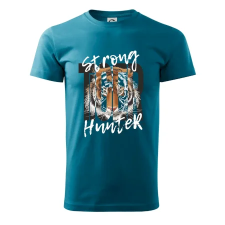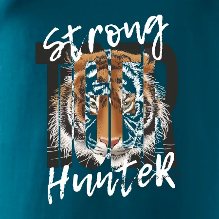 Buď silný jako tygr. Hledáš triko se zvířecí tématikou a máš rád silná a dravá zvířata? Tygr jako kočkovitá šelma je přesně pro tebe. Triko s tygrem je doplněno nápisem "Tiger, strong hunter" a je to vhodný dárek pro milovníka přírody.