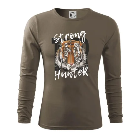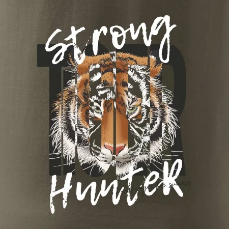 Buď silný jako tygr. Hledáš triko se zvířecí tématikou a máš rád silná a dravá zvířata? Tygr jako kočkovitá šelma je přesně pro tebe. Triko s tygrem je doplněno nápisem "Tiger, strong hunter" a je to vhodný dárek pro milovníka přírody.