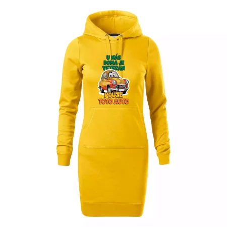 Dámské mikinové šaty MALFINI Snap 419 jsou ideální volbou pro ženy, které hledají pohodlný a stylový kousek pro volný čas nebo každodenní nošení. Lehce vypasovaný střih s bočními švy podtrhuje ženskou siluetu, zatímco kapuce s podšívkou a stahovací šňůrkou dodává ležérní vzhled. Šaty mají délku nad kolena a jsou vybaveny nakládanou kapsou ve stylu „klokanky“. Materiál je měkký a příjemný na dotek díky směsi bavlny a polyesteru s nepočesanou vnitřní stranou.