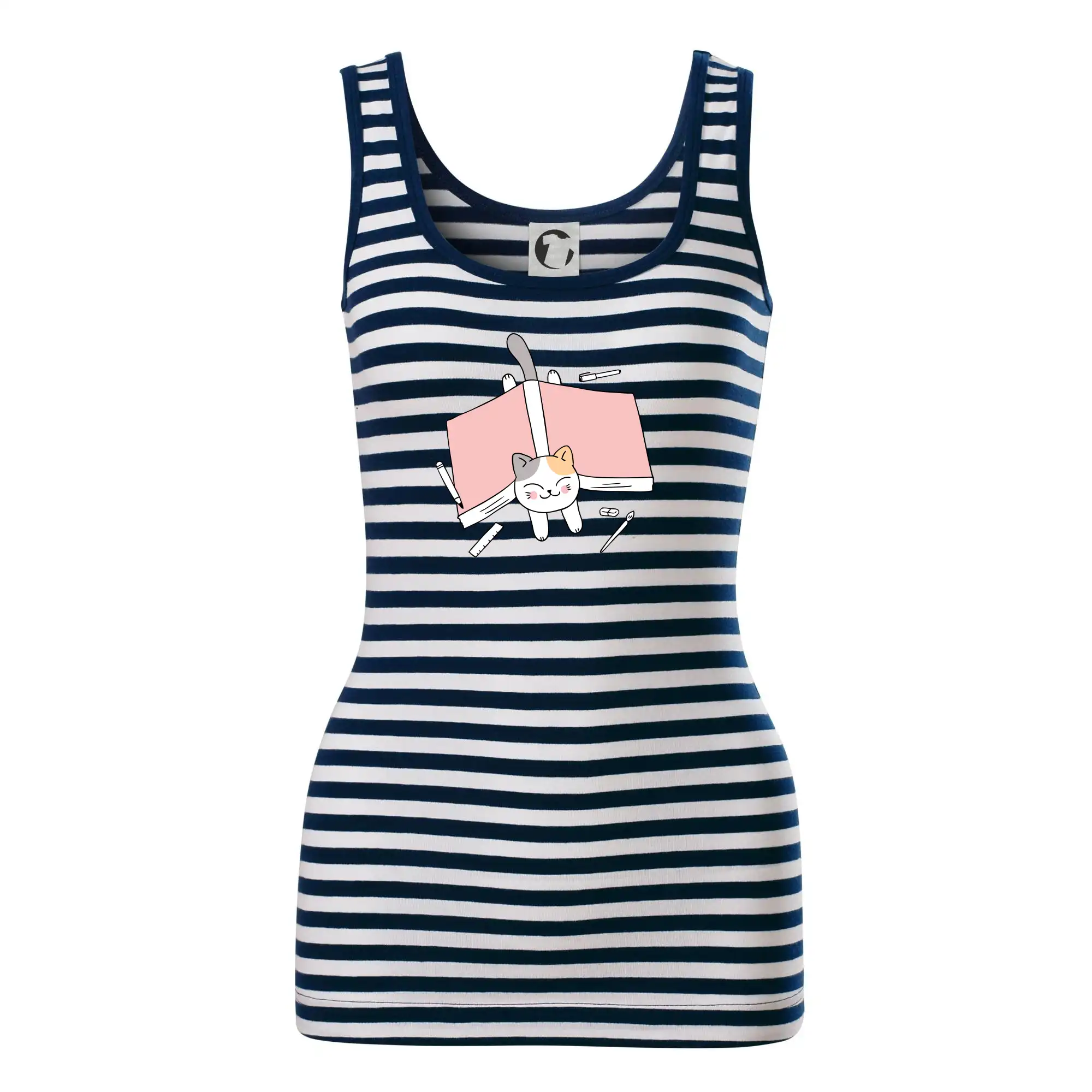 Dámské tílko MALFINI Sailor Top 806 přináší ikonický námořnický vzhled s bílo-modrými pruhy, ideální pro letní dny, výlety nebo ležérní outfity.