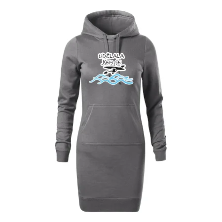 Dámské mikinové šaty MALFINI Snap 419 jsou ideální volbou pro ženy, které hledají pohodlný a stylový kousek pro volný čas nebo každodenní nošení. Lehce vypasovaný střih s bočními švy podtrhuje ženskou siluetu, zatímco kapuce s podšívkou a stahovací šňůrkou dodává ležérní vzhled.