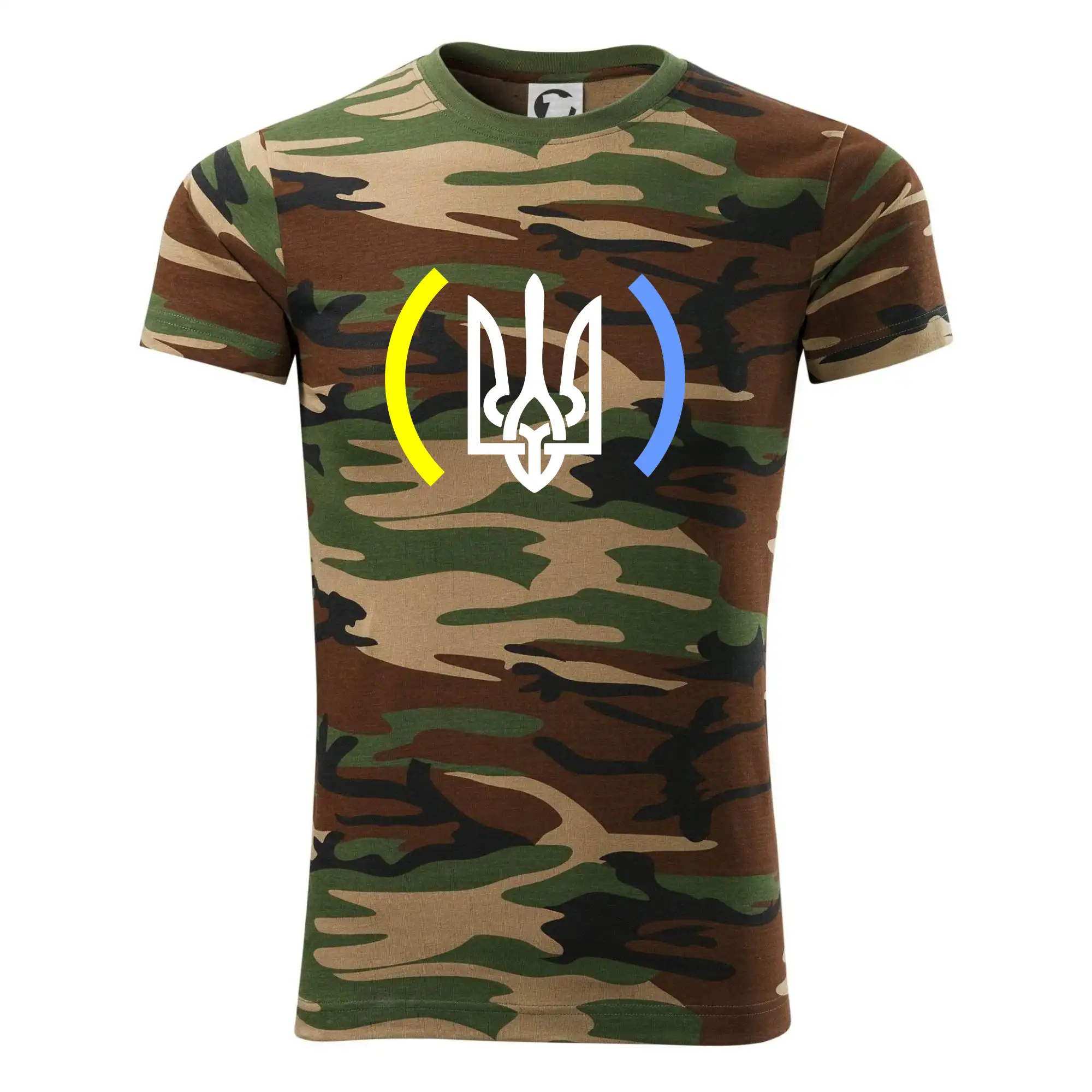 Tričko střední gramáže v barvách camouflage. Střih s bočními švy. Lem průkrčníku ze žebrového úpletu s přídavkem 5 % elastanu. Vnitřní část zadního průkrčníku začištěna páskou v barvě camouflage.