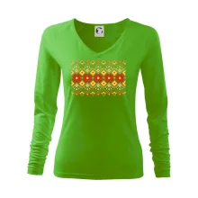 Tolerantnější vypasování dámského střihu, který je vhodný pro všechny typy postavy, ideální délka rukávů a konzervativní výstřih zakončený žebrováním, které skvěle drží tvar.