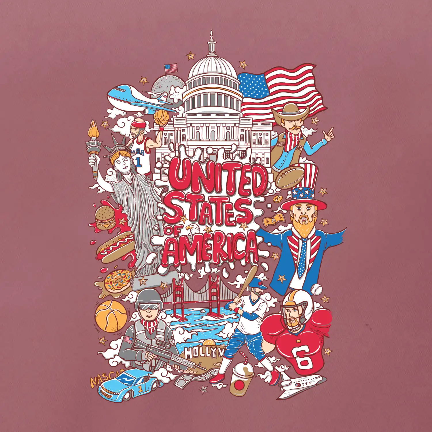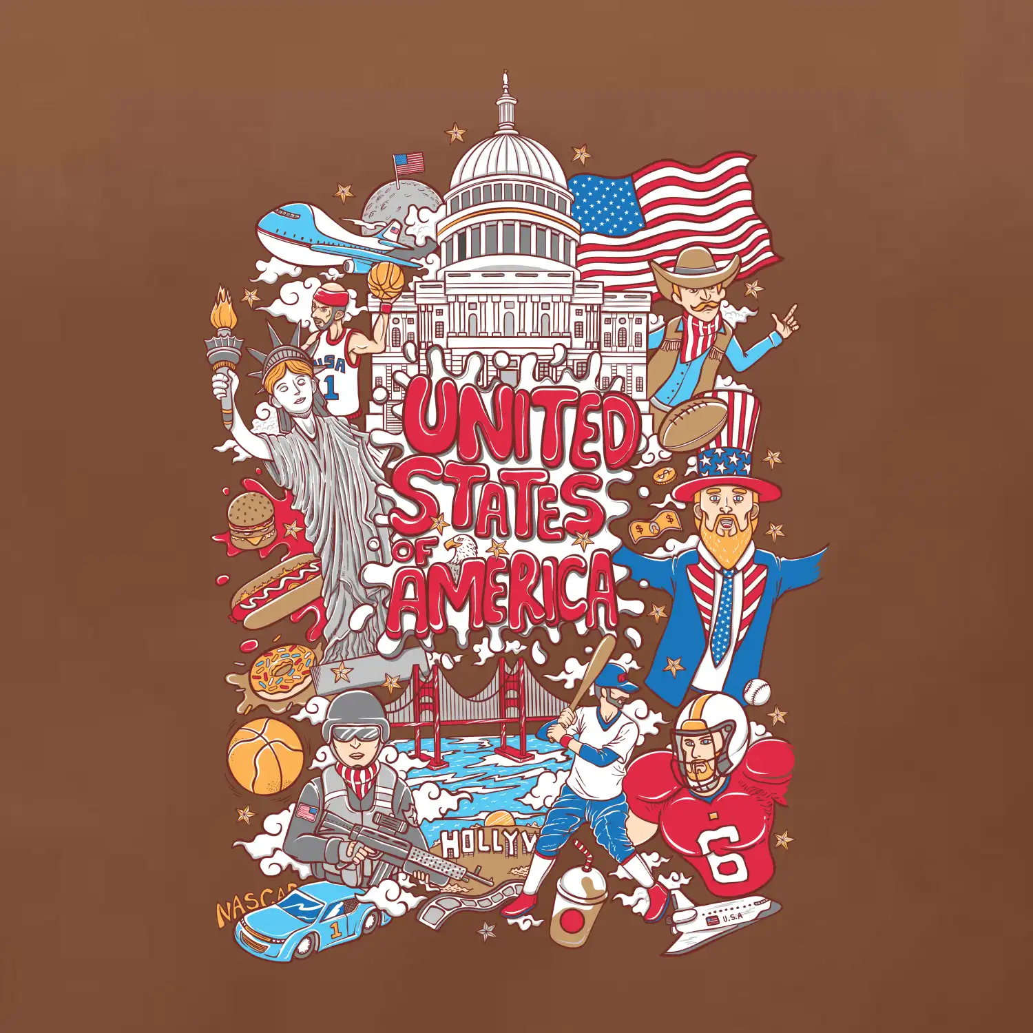 Cestovatelské triko pro cestovatele, který má rád USA. Triko s motivem "United States of America" ti poznávání Ameriky usnadní. Triko je vhodné pro cestovatele, kteří mají rádi poznávání nových zemí, zejména pak Spojené státy americké. Amerika s tímhle trikem bude na dosah!