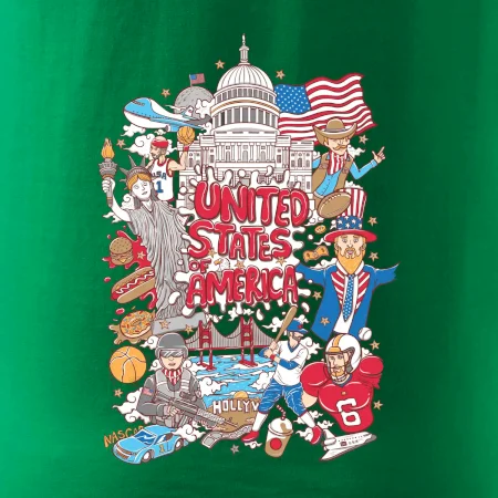 Cestovatelské triko pro cestovatele, který má rád USA. Triko s motivem "United States of America" ti poznávání Ameriky usnadní. Triko je vhodné pro cestovatele, kteří mají rádi poznávání nových zemí, zejména pak Spojené státy americké. Amerika s tímhle trikem bude na dosah!