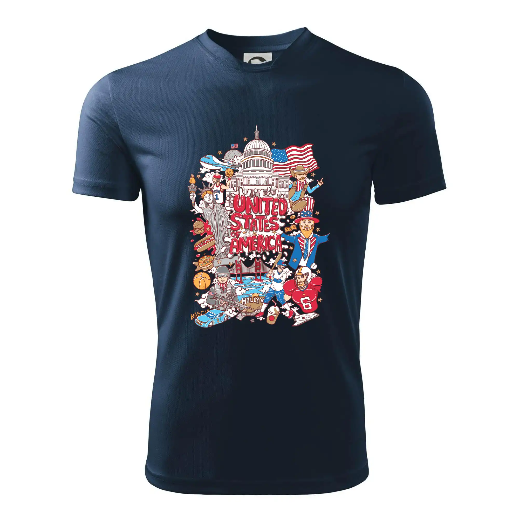 Cestovatelské triko pro cestovatele, který má rád USA. Triko s motivem "United States of America" ti poznávání Ameriky usnadní. Triko je vhodné pro cestovatele, kteří mají rádi poznávání nových zemí, zejména pak Spojené státy americké. Amerika s tímhle trikem bude na dosah!