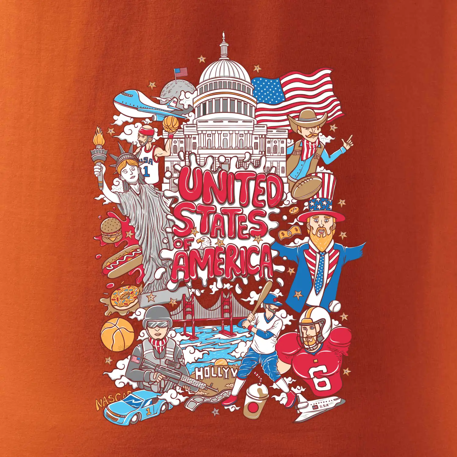 Cestovatelské triko pro cestovatele, který má rád USA. Triko s motivem "United States of America" ti poznávání Ameriky usnadní. Triko je vhodné pro cestovatele, kteří mají rádi poznávání nových zemí, zejména pak Spojené státy americké. Amerika s tímhle trikem bude na dosah!