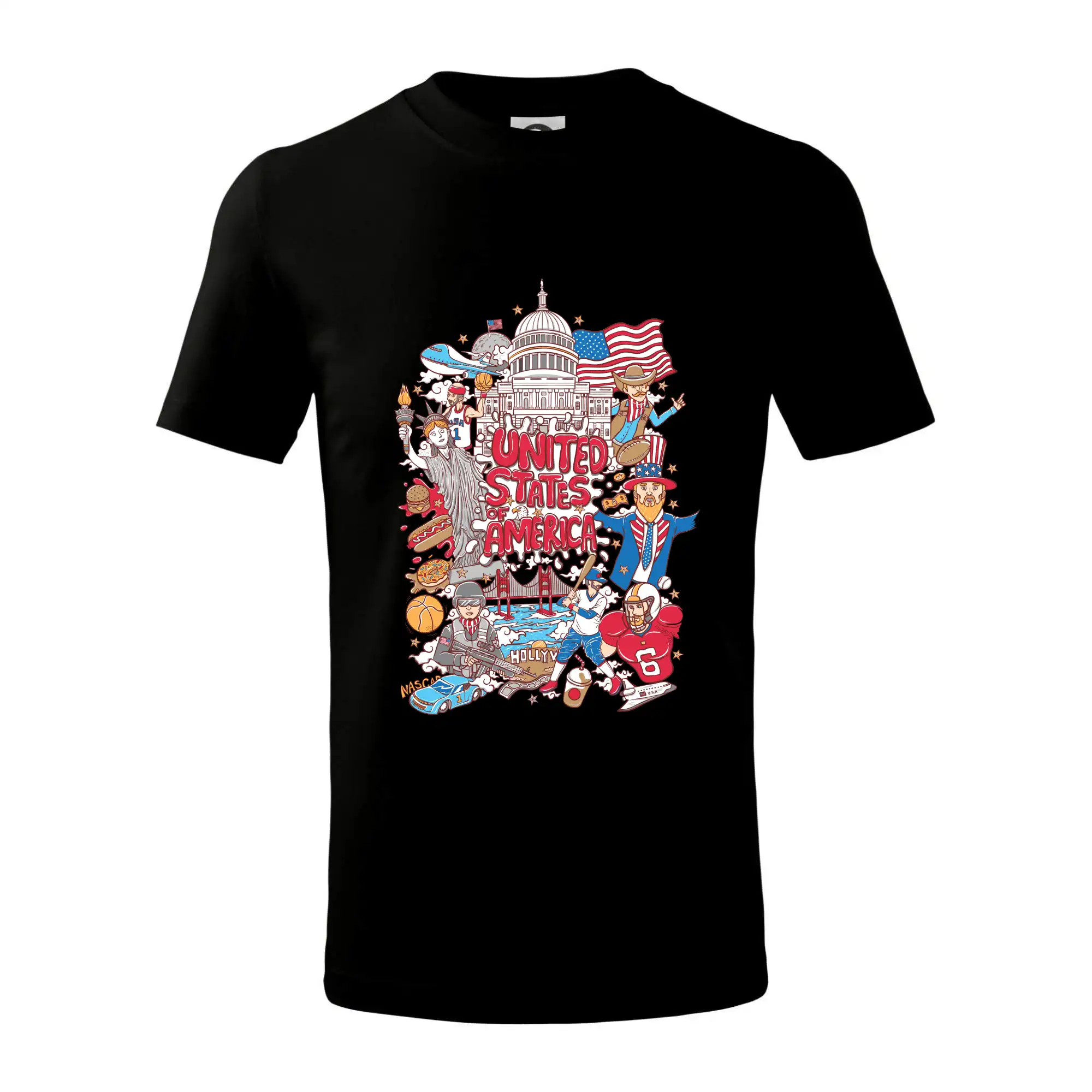 Cestovatelské triko pro cestovatele, který má rád USA. Triko s motivem "United States of America" ti poznávání Ameriky usnadní. Triko je vhodné pro cestovatele, kteří mají rádi poznávání nových zemí, zejména pak Spojené státy americké. Amerika s tímhle trikem bude na dosah!