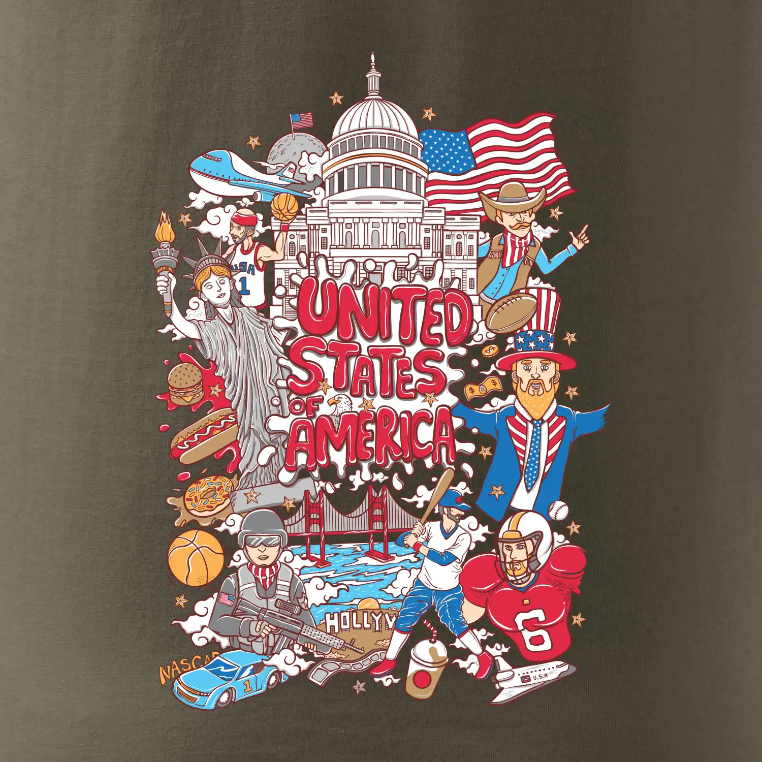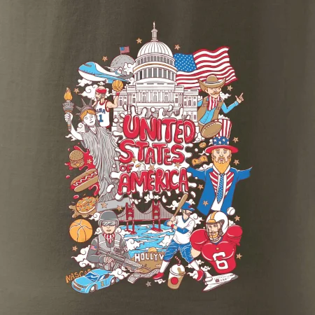 Cestovatelské triko pro cestovatele, který má rád USA. Triko s motivem "United States of America" ti poznávání Ameriky usnadní. Triko je vhodné pro cestovatele, kteří mají rádi poznávání nových zemí, zejména pak Spojené státy americké. Amerika s tímhle trikem bude na dosah!