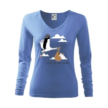 Tolerantnější vypasování dámského střihu, který je vhodný pro všechny typy postavy, ideální délka rukávů a konzervativní výstřih zakončený žebrováním, které skvěle drží tvar.