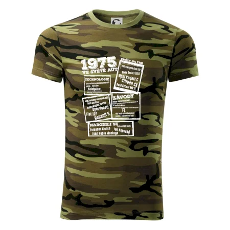 Tričko střední gramáže v barvách camouflage. Střih s bočními švy. Lem průkrčníku ze žebrového úpletu s přídavkem 5 % elastanu. Vnitřní část zadního průkrčníku začištěna páskou v barvě camouflage.