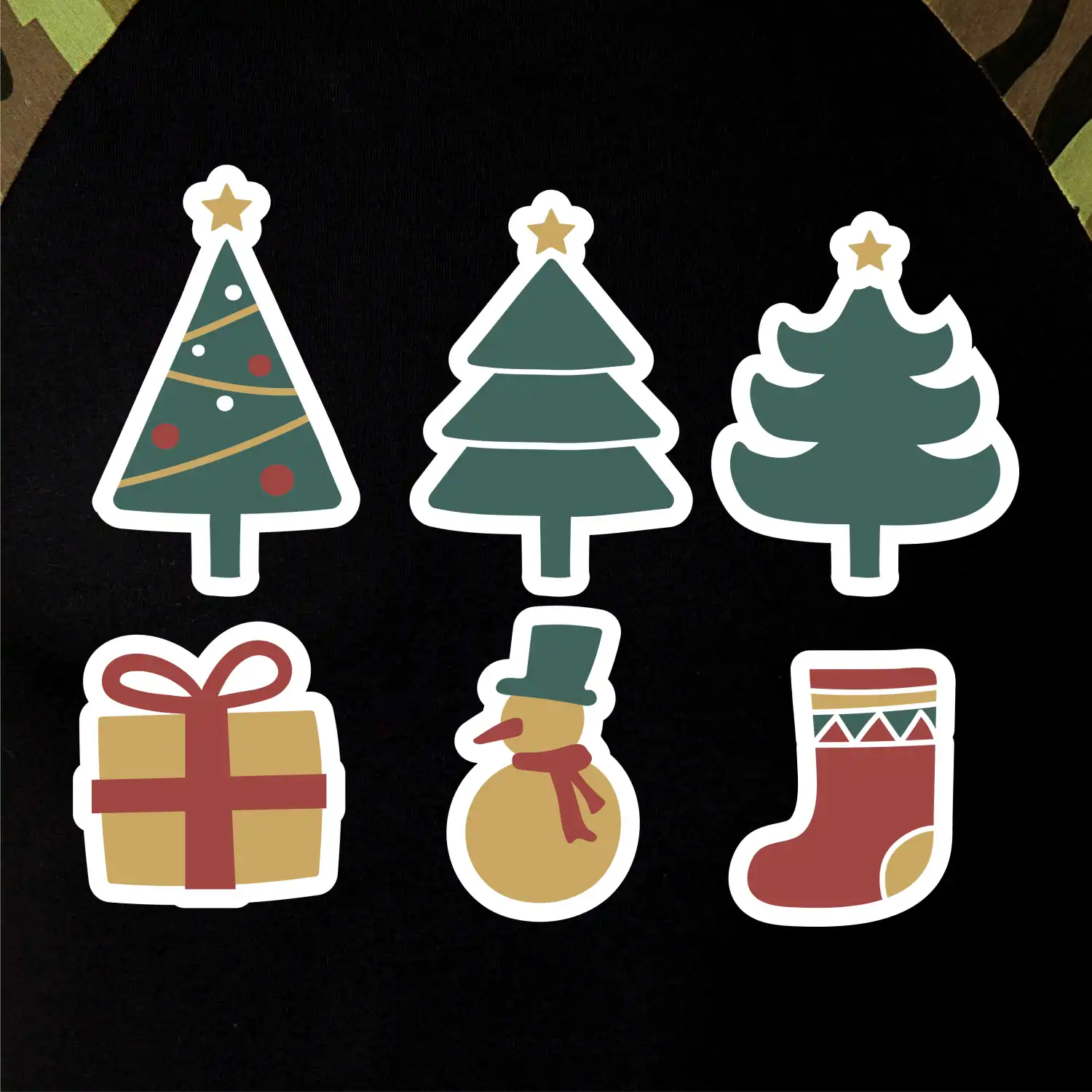 Vánoční sada - stromky a dárky - Camouflage LS