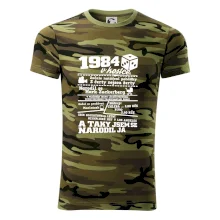 Tričko střední gramáže v barvách camouflage. Střih s bočními švy. Lem průkrčníku ze žebrového úpletu s přídavkem 5 % elastanu. Vnitřní část zadního průkrčníku začištěna páskou v barvě camouflage.