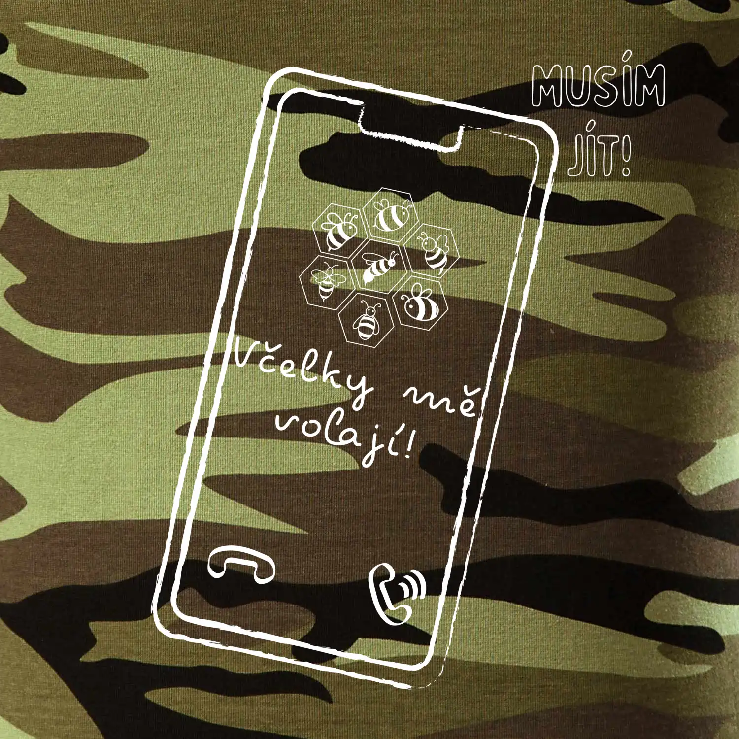 Tričko střední gramáže v barvách camouflage. Střih s bočními švy. Lem průkrčníku ze žebrového úpletu s přídavkem 5 % elastanu. Vnitřní část zadního průkrčníku začištěna páskou v barvě camouflage.
