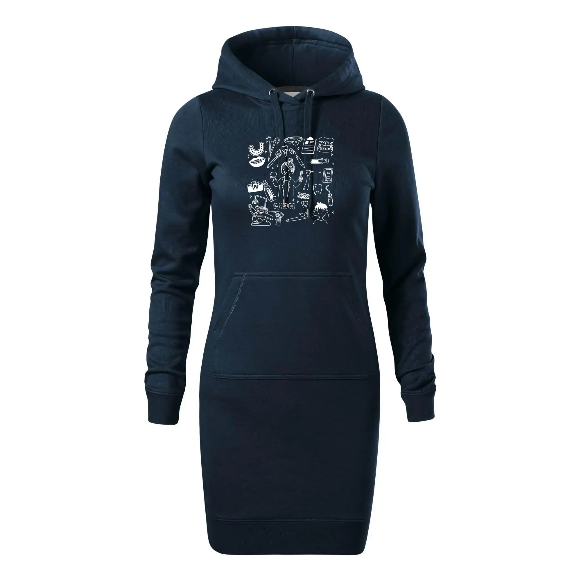 Dámské mikinové šaty MALFINI Snap 419 jsou ideální volbou pro ženy, které hledají pohodlný a stylový kousek pro volný čas nebo každodenní nošení. Lehce vypasovaný střih s bočními švy podtrhuje ženskou siluetu, zatímco kapuce s podšívkou a stahovací šňůrkou dodává ležérní vzhled. Šaty mají délku nad kolena a jsou vybaveny nakládanou kapsou ve stylu „klokanky“. Materiál je měkký a příjemný na dotek díky směsi bavlny a polyesteru s nepočesanou vnitřní stranou.