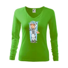 Tolerantnější vypasování dámského střihu, který je vhodný pro všechny typy postavy, ideální délka rukávů a konzervativní výstřih zakončený žebrováním, které skvěle drží tvar.