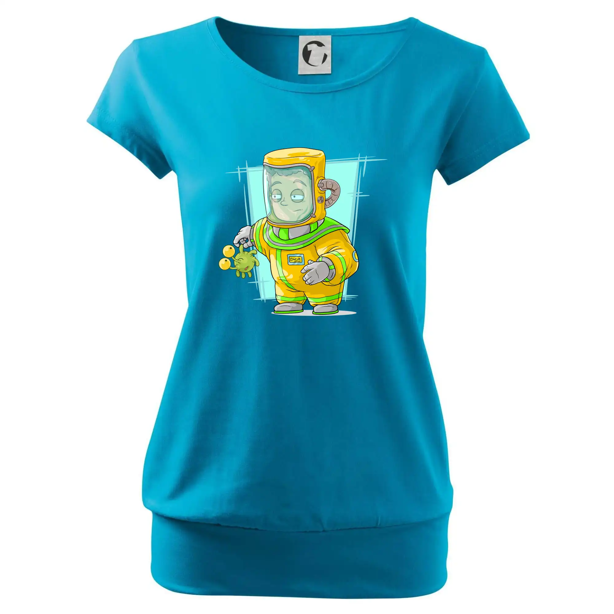 Trendové dámské triko s velmi krátkým rukávem, volnějšího střihu, v dolním kraji všité do širokého lemu. Kulatý průkrčník s úzkým lemem ze shodného materiálu.