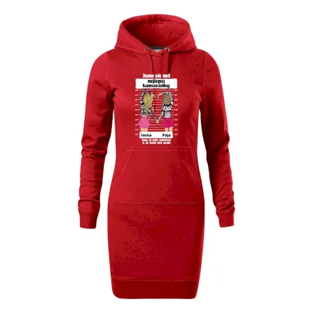 Dámské mikinové šaty MALFINI Snap 419 jsou ideální volbou pro ženy, které hledají pohodlný a stylový kousek pro volný čas nebo každodenní nošení. Lehce vypasovaný střih s bočními švy podtrhuje ženskou siluetu, zatímco kapuce s podšívkou a stahovací šňůrkou dodává ležérní vzhled.