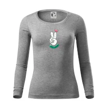 Tolerantnější vypasování dámského střihu, který je vhodný pro všechny typy postavy, ideální délka rukávů a konzervativní výstřih zakončený žebrováním, které skvěle drží tvar.