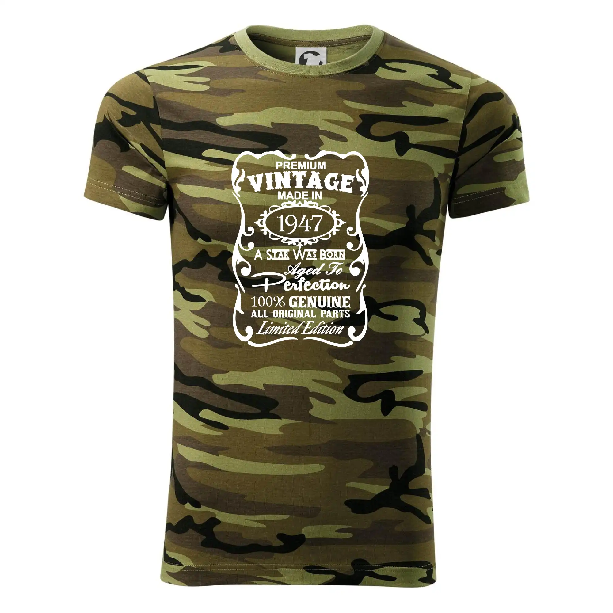 Tričko střední gramáže v barvách camouflage. Střih s bočními švy. Lem průkrčníku ze žebrového úpletu s přídavkem 5 % elastanu. Vnitřní část zadního průkrčníku začištěna páskou v barvě camouflage.